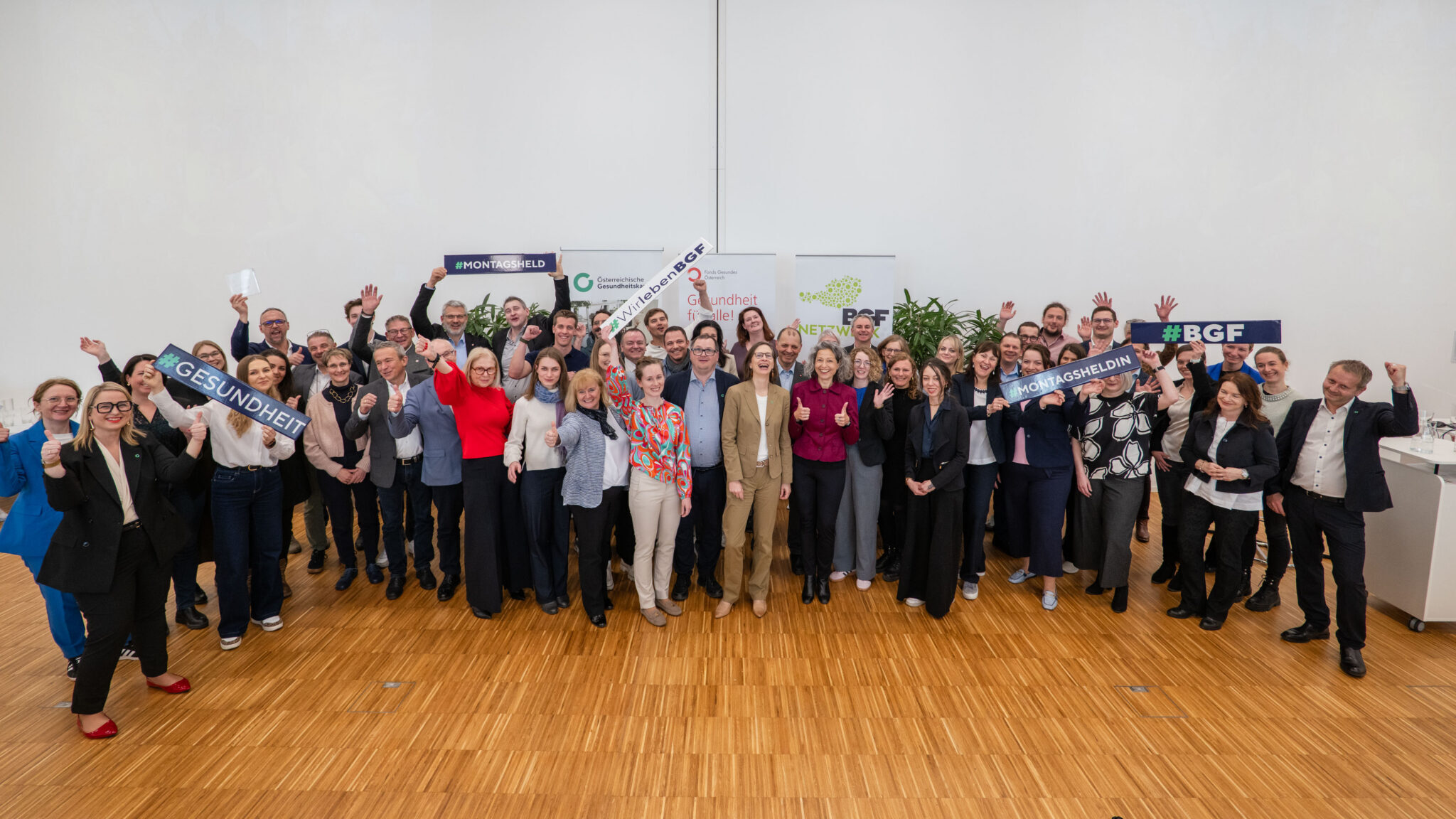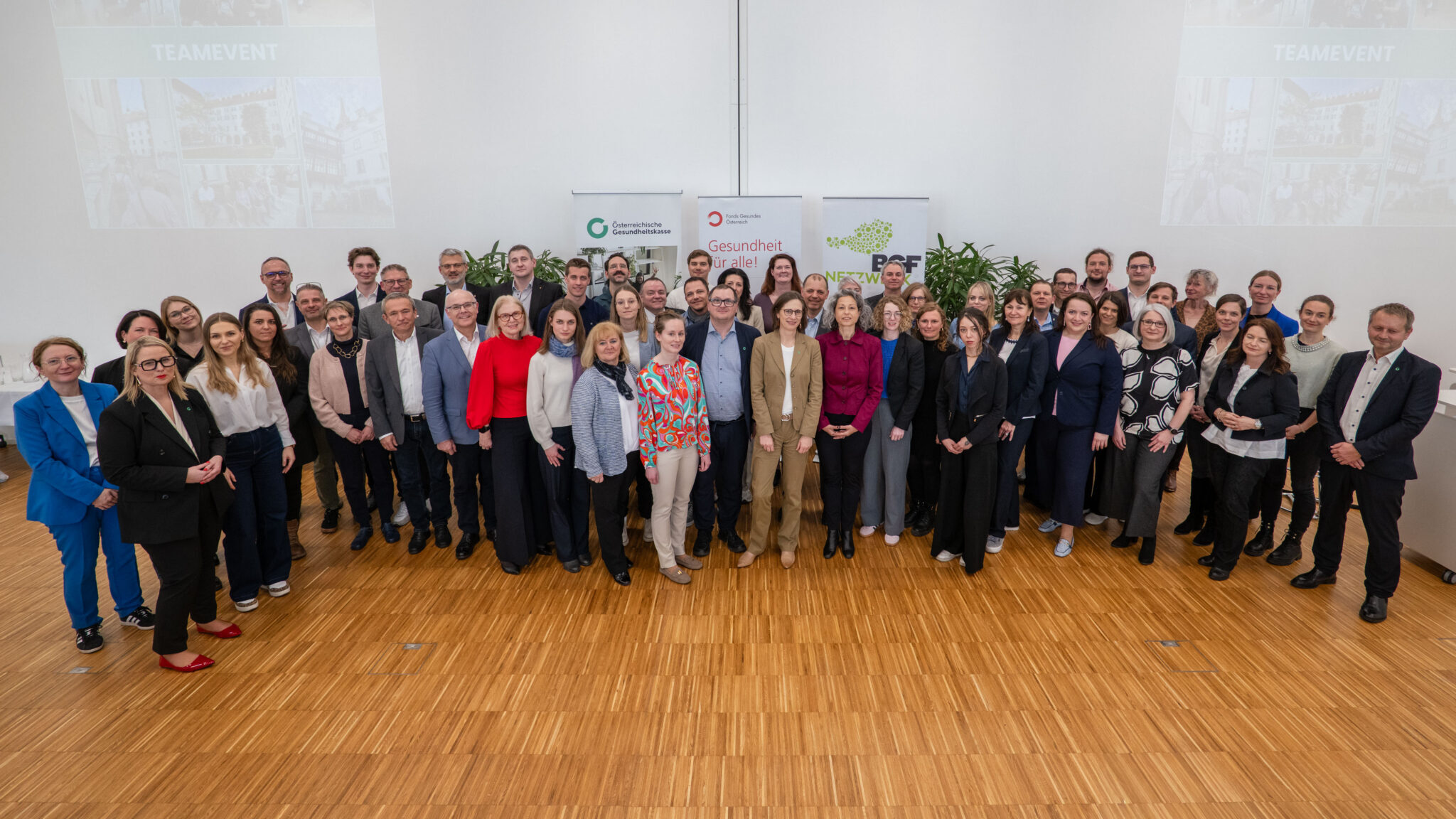An der Zeremonie nahmen hochrangige Vertreter aus dem Gesundheitswesen teil, unter anderem Gert Lang, Vorsitzender des Fonds „Gesundes Österreich“ sowie Walter Seemann, Vorsitzender des Wiener ÖGK‑Landesstellenausschusses.
